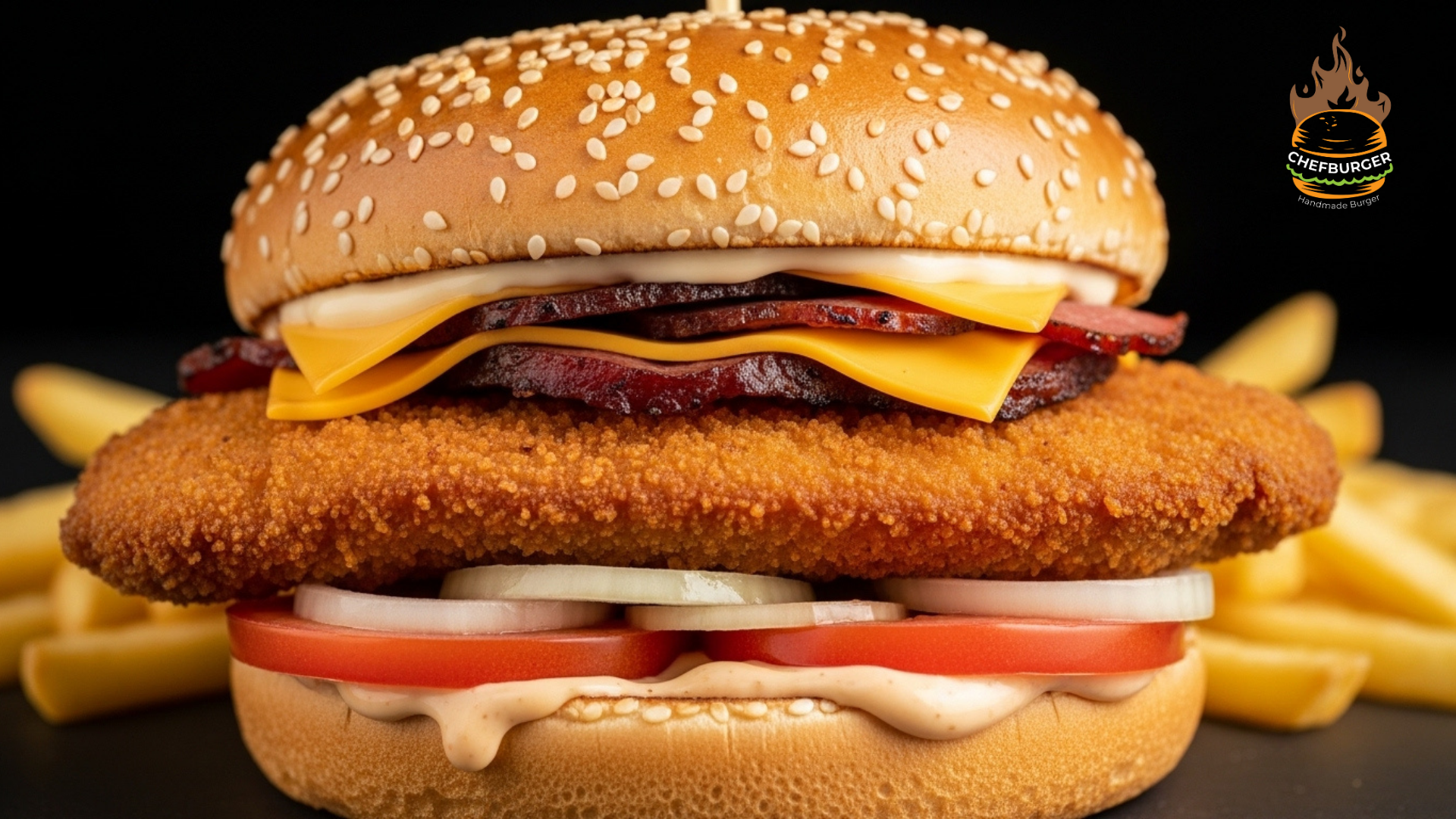 TAVUK ETİ, FÜME ET, DOMATES, CHEDDAR PEYNİRİ, SOĞAN, DİPSOS VE PATATES