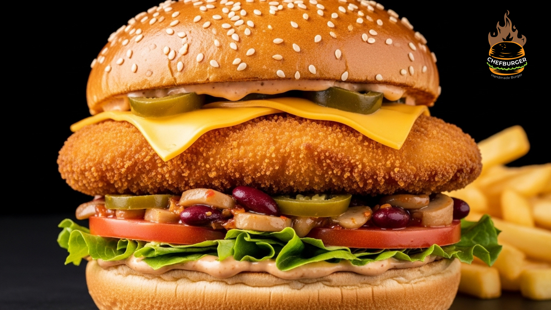 TAVUK ETİ, YEŞİLLİK, TURŞU, DOMATES, ACI SOS, MEKSİKA FASULYESİ, JALAPENO BİBER, CHEDDAR PEYNİRİ, KARAMELİZE MANTAR, DİP SOS VE PATATES